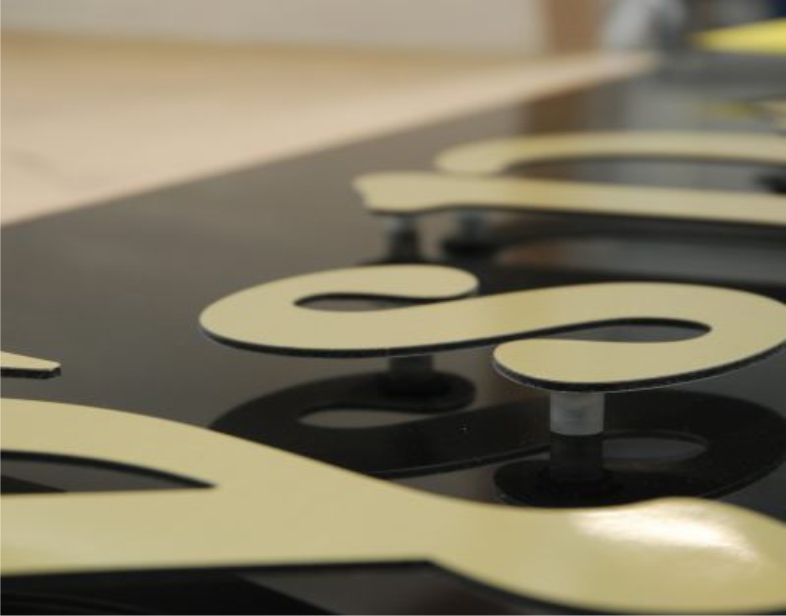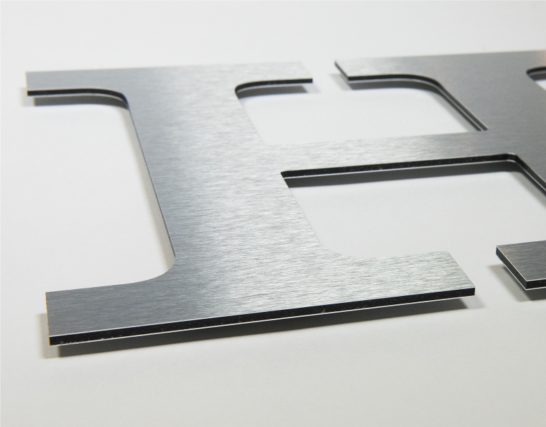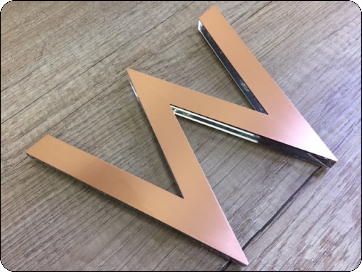 We can create unusual effects by bonding different sheet materials together prior to cutting on the CNC router, so this is great method to get innovative at lower cost then metal build up letters.