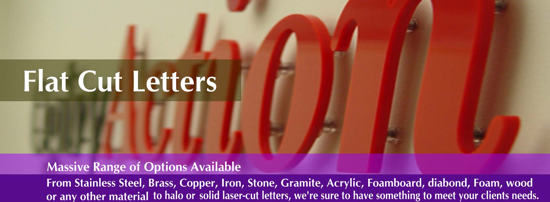 From 1mm to 30mm thick, acrylic flat cut letters are strong , long lasting & available in wide colour option. To get innovative chat to us about layering with luminous acrylic to create glow effects or simply layering with different colours to incorporate your secondary corporate colour. As with all flat cut latters, these can be fitted flat to surface or on nylon stand off locater fixings. Producing in thicker acrylic allows for a 3D effect, we’d be happy to show you samples and examples upon request.